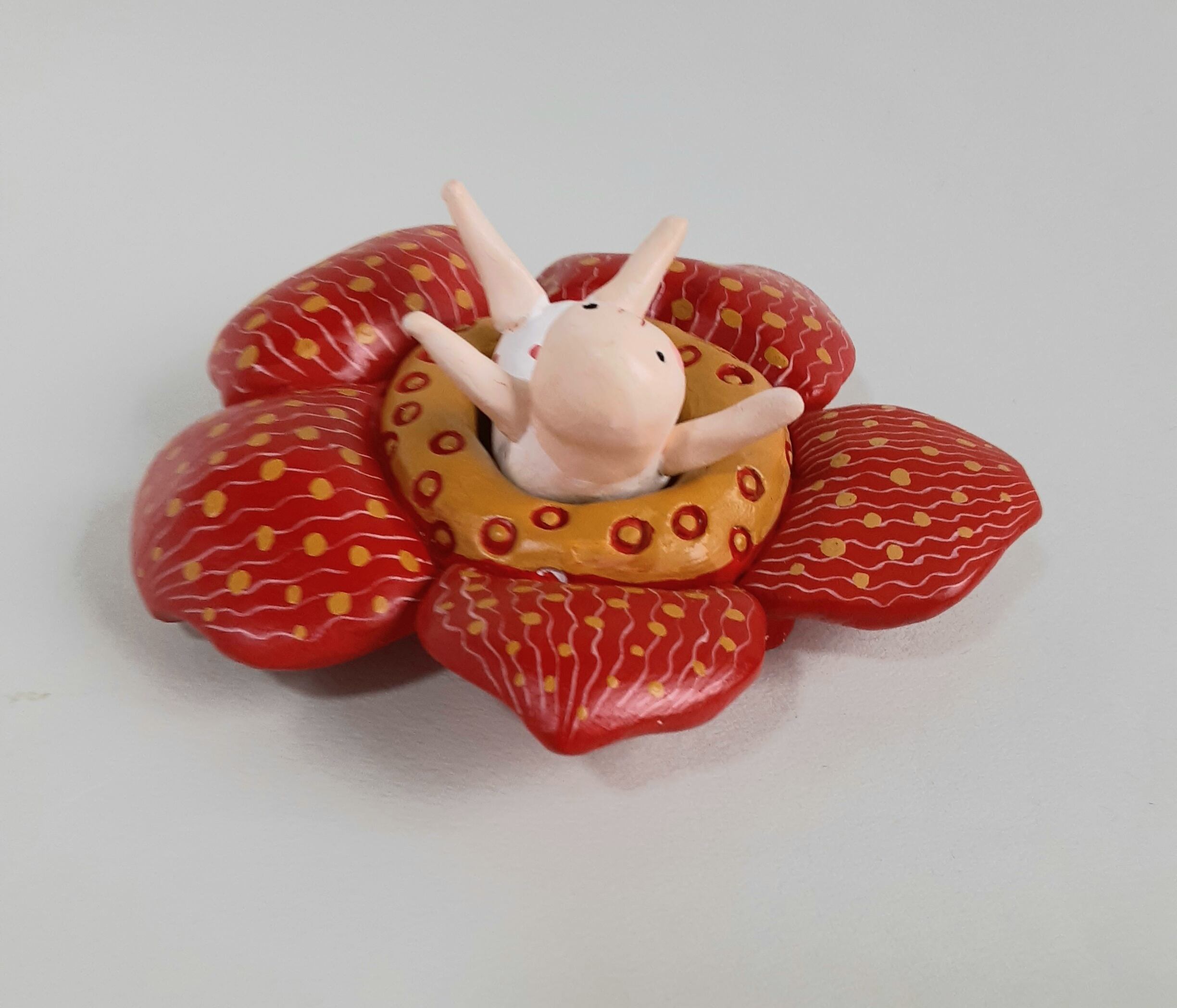 大きな花からまさに今赤ちゃんが生まれました。細かい模様がたくさん入っていて豪華です。お子さまの誕生お祝いにもぴったりです。